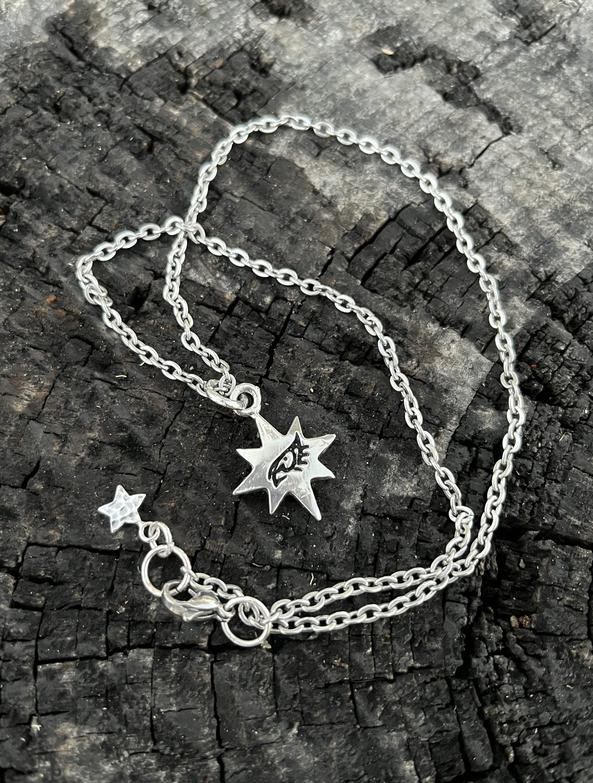 Beautifully handmade with pewter, stainless steel, and sterling silver. Will come in a decorative small box. Measures at 18”. Each charm is a little different due to the casting which makes it a little extra special.
