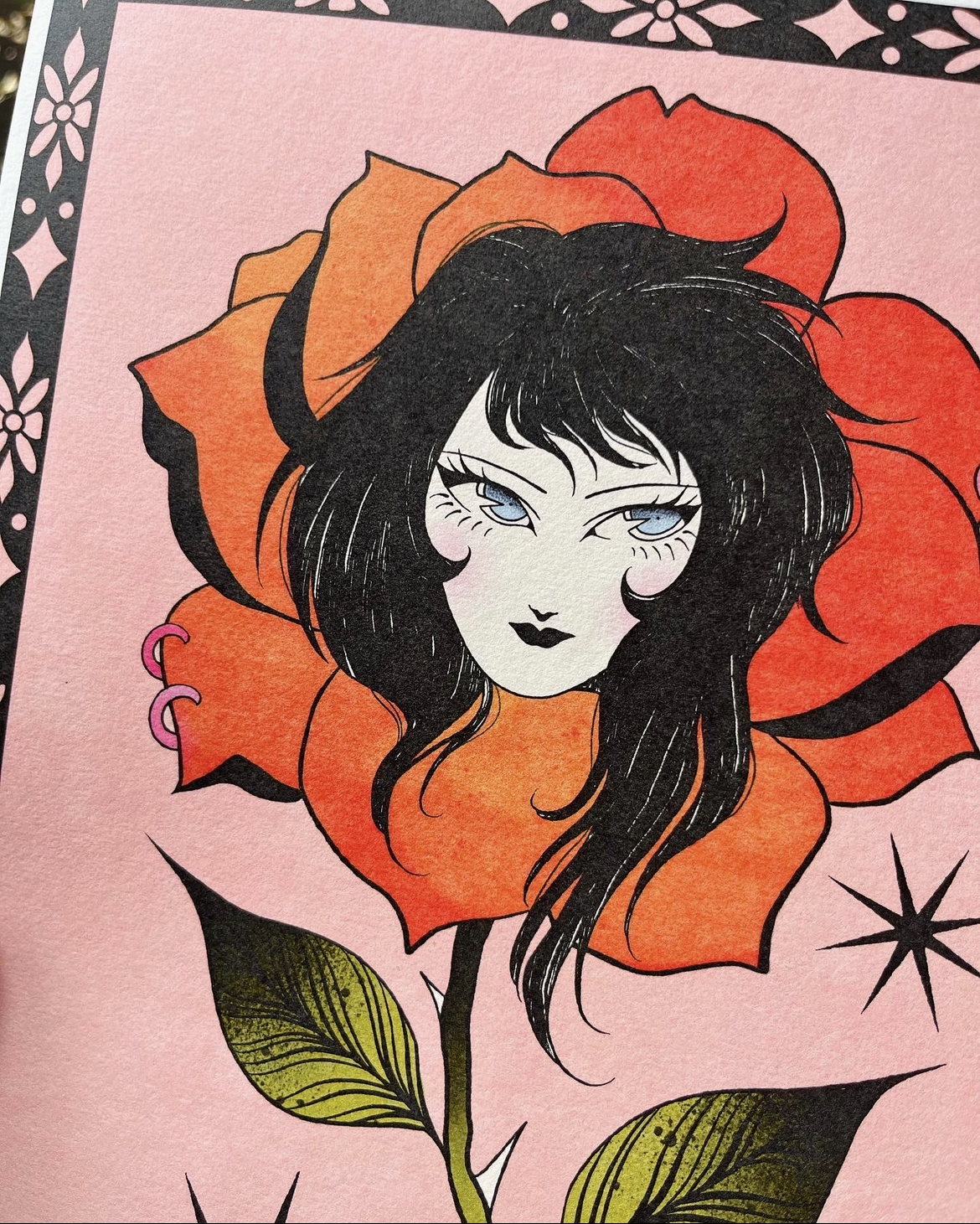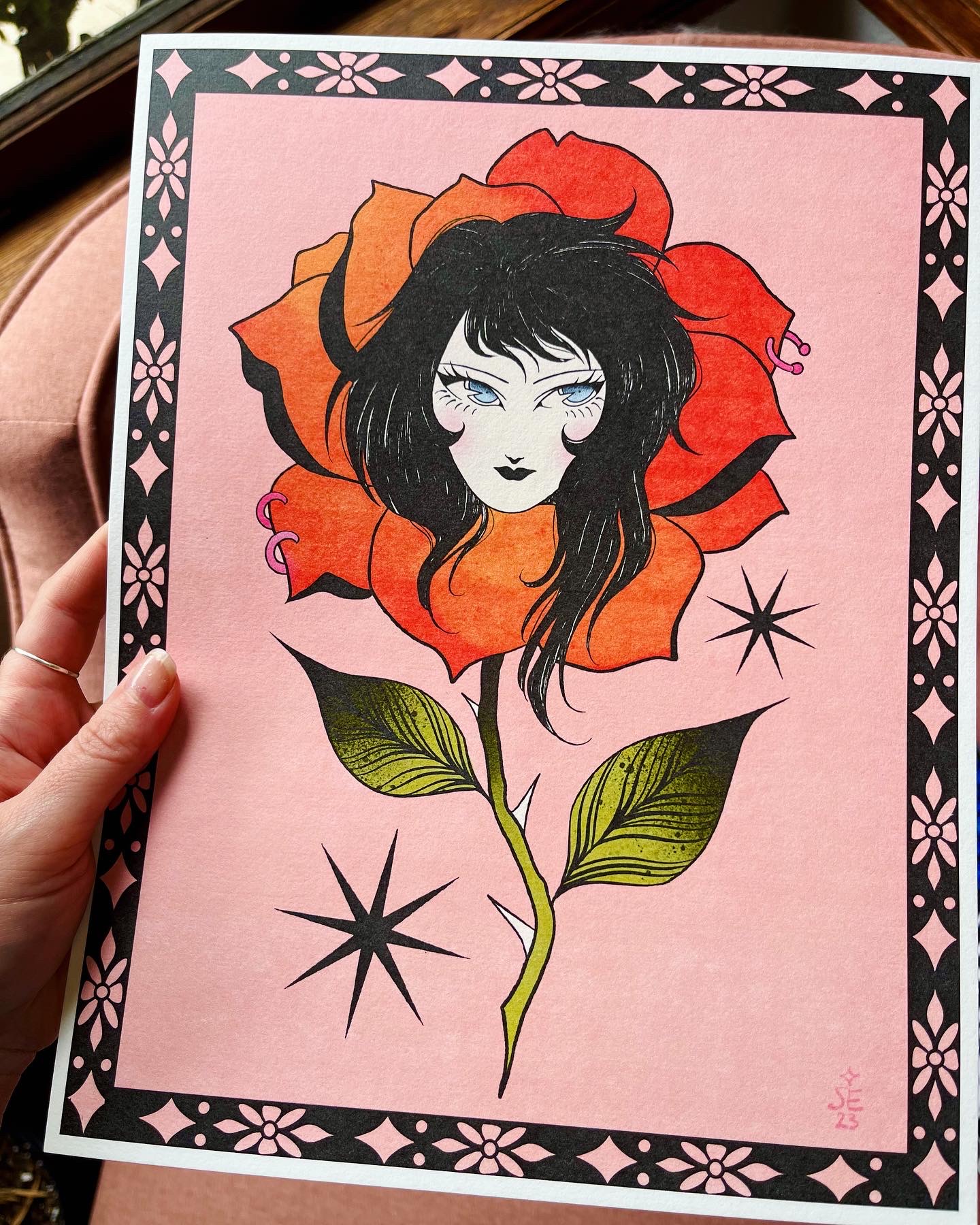 High quality limited prints on cream cotton paper. Measures at 8.5x11" inches. Would recommend to immediately frame so as not to disturb/damage the paper as it is cotton and unsealed.